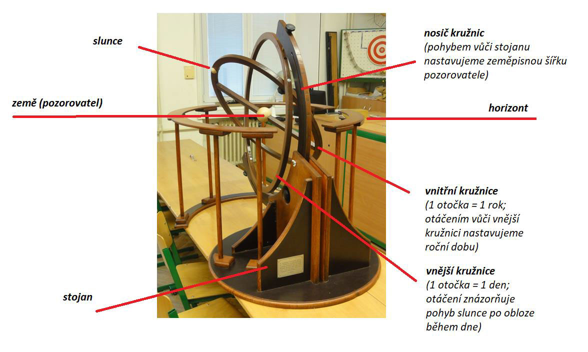 Dřevěný model znázorňující pohyb slunce po obloze.